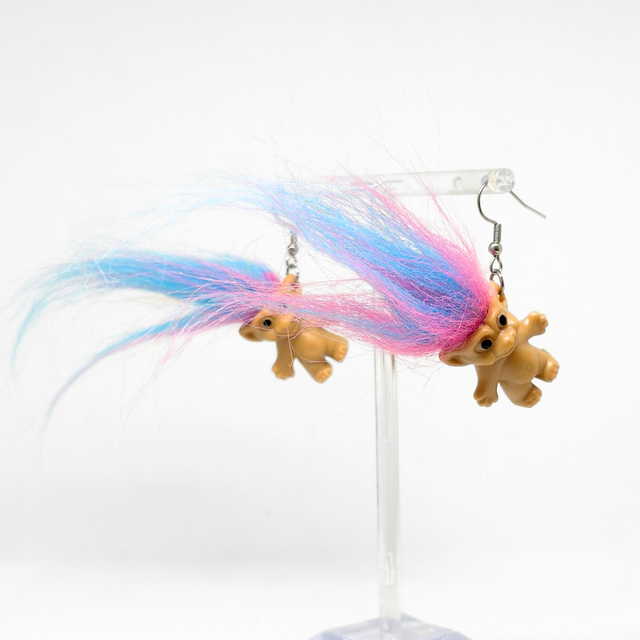 Nostalgic, kitchsy, statement piece earrings, these Troll Dolls are drilled into, and assembled alongside hypoallergenic stainless steel earring components. These earrings are surprisingly light so perfect for small ears too!